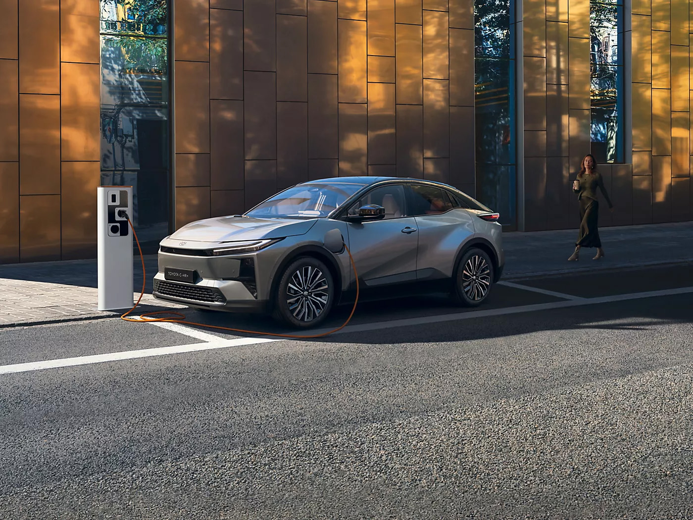Den viste model er en Toyota C-HR+ Executive Panorama 77 kWh til 369.990 kr. Elektrisk forbrug 157 Wh/km, rækkevidde 500 km. Batterikap. 77,0 kWh.